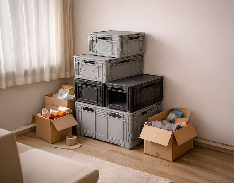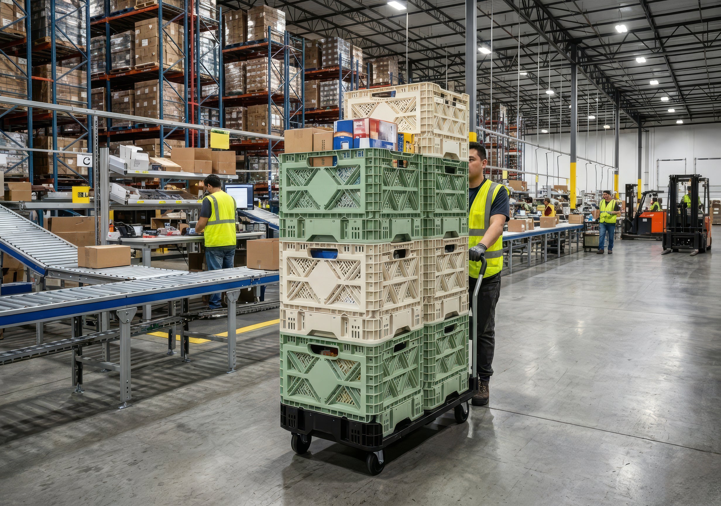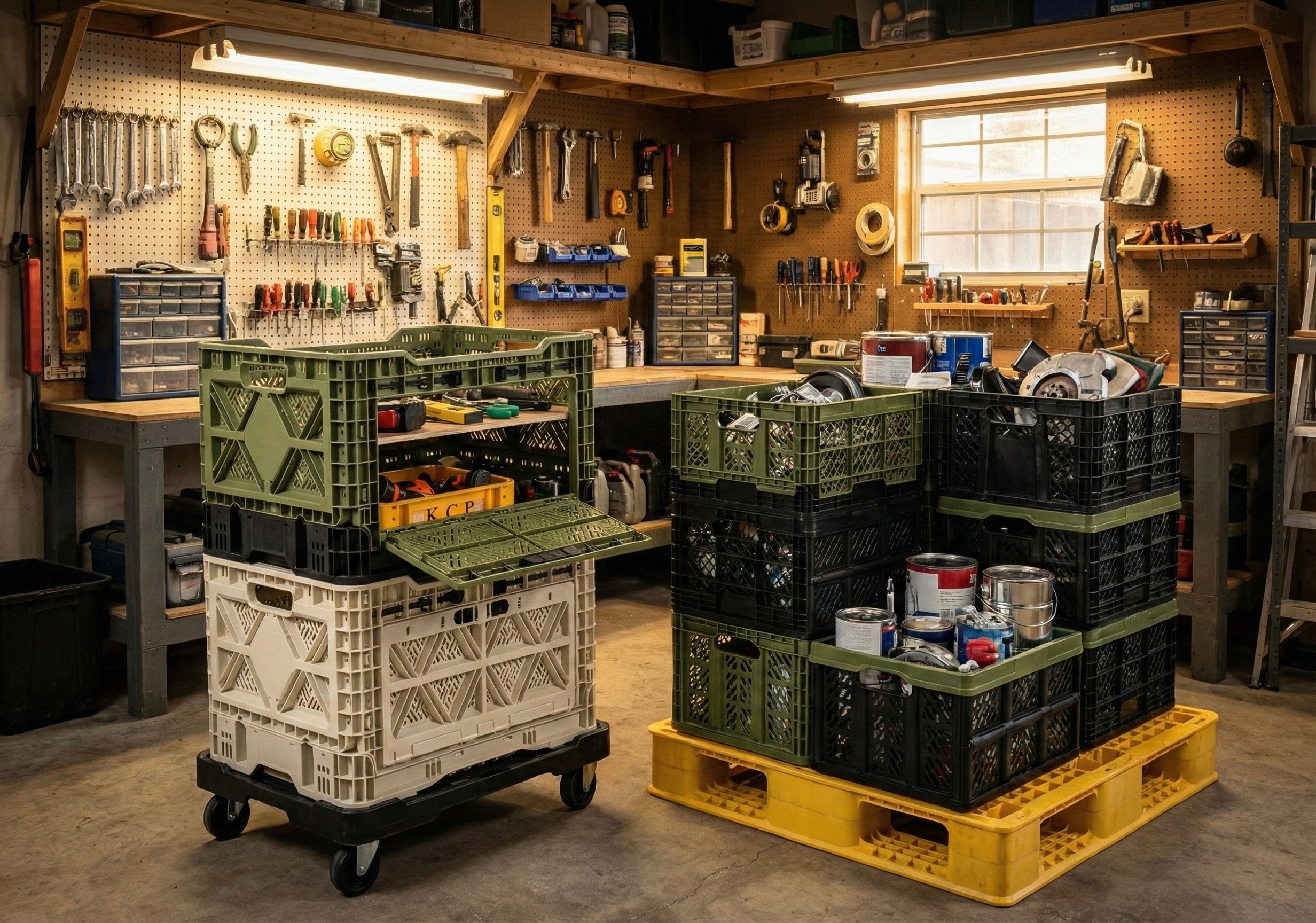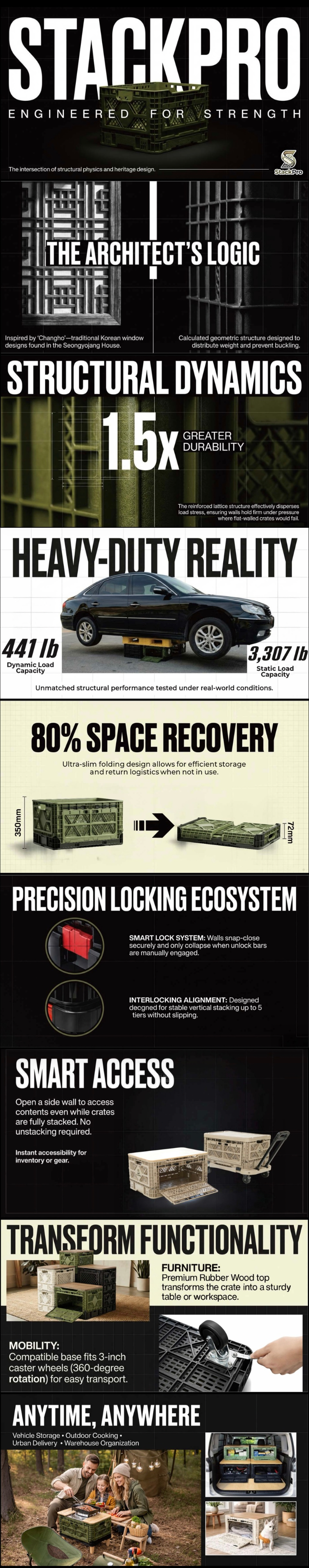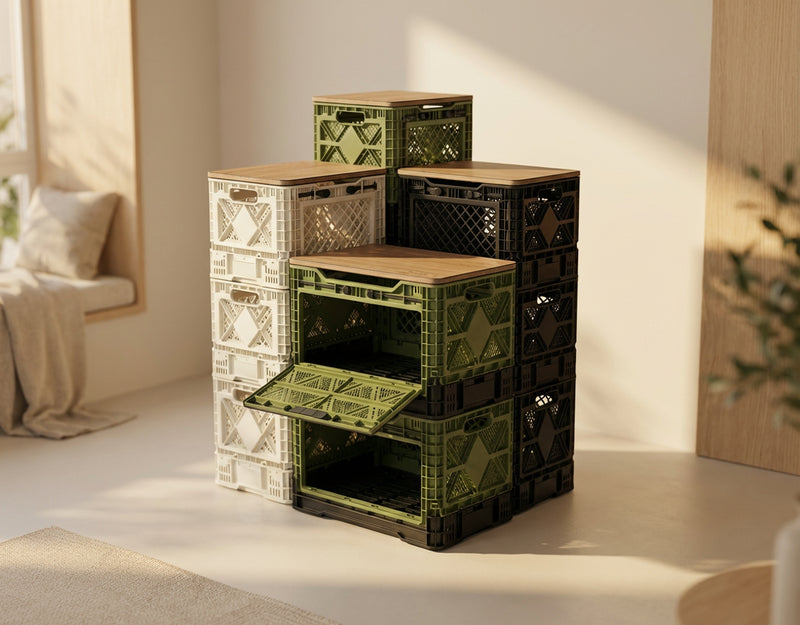 A collapsible crate system designed for heavy load, smart stacking, and effortless mobility.